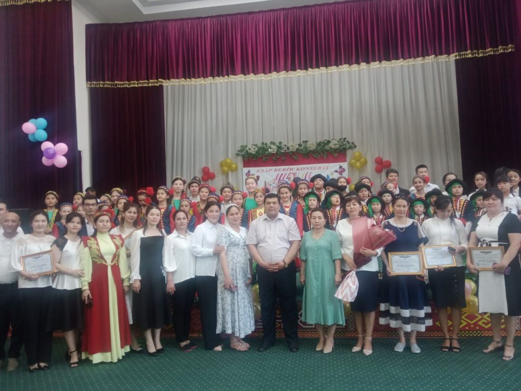 Бугун 2023-жыл 20-май куни Такыятас районы 7-санлы балалар музыка ҳәм көркем-өнер мектебинде 2022-2023-оқыў жылының жуўмағы бойынша мектеп оқыўшыларының « Есап бериў концерти » болып өтти. Дәслеп мектеп директоры К.Шавхумов район Хәкими, мәденият министри ҳәм кәсиплик ауқамы тәрепиннен берилген Мақтау жарлығы ҳәм сыйлы сауғалар менен районымызға, мектебимизге мийнети синген устазларды сыйлықлады. Республика рухийлық ҳәм ағартыў орайы Такыятас районы бөлими тәрепиненде мектебимиз устазларын Мақтау жарлығы ҳәм сыйлы сауғалар менен сыйлықлады соң мектебимиз оқыўшылары атқаруында келген мийманларға ҳам ата-аналарға арналған концерт бағдарламасын усынды.